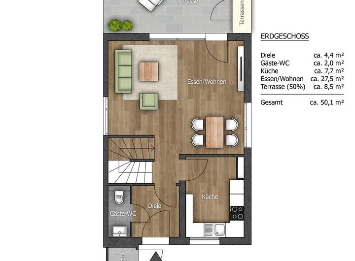 Willkommen in Ihrem neuen, nachhaltig konzipierten Reihenhaus mit ca. 120 m² Wohnfläche, verteilt auf vier Zimmer und drei Ebenen – ideal für Familien, Paare oder alle, die großzügigen Wohnkomfort schätzen.