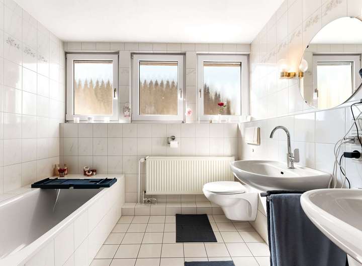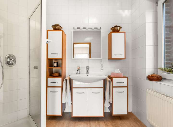 Auch im Alltag überzeugt das Haus mit vielen praktischen Lösungen: Im Erdgeschoss steht ein Duschbad zur Verfügung – ideal für Gäste oder für den schnellen Start in den Tag. Im Obergeschoss erwarten Sie zusätzlich ein Wannen- und ein Duschbad, sodass morgens niemand lange warten muss. Der Hauswirtschaftsraum und mehrere Abstellmöglichkeiten sorgen zudem für Ordnung und Struktur – ein wichtiger Pluspunkt für das Familienleben.