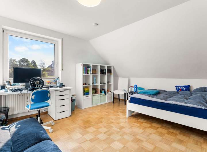 Ein besonderes Highlight ist der ausgebaute Dachboden, der über eine feste Treppe erreichbar ist. Ob als Spielparadies für die Kinder, Rückzugsort für Teenager oder kreatives Atelier – hier sind Ihren Ideen keine Grenzen gesetzt.
