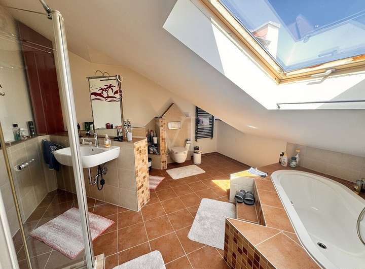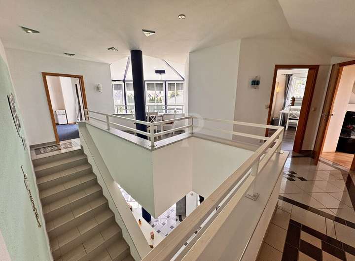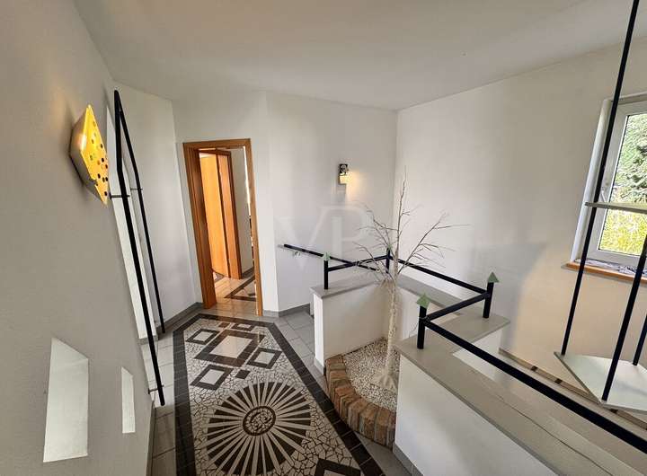 Einige Renovierungsarbeiten sind nun nach fast 30 Jahren erforderlich, bieten jedoch die Möglichkeit, individuelle Wünsche in die Gestaltung einzubringen und dem Haus eine persönliche Note zu verleihen. Die durchdachte und außergewöhnliche Architektur bildet hierfür eine solide Grundlage.