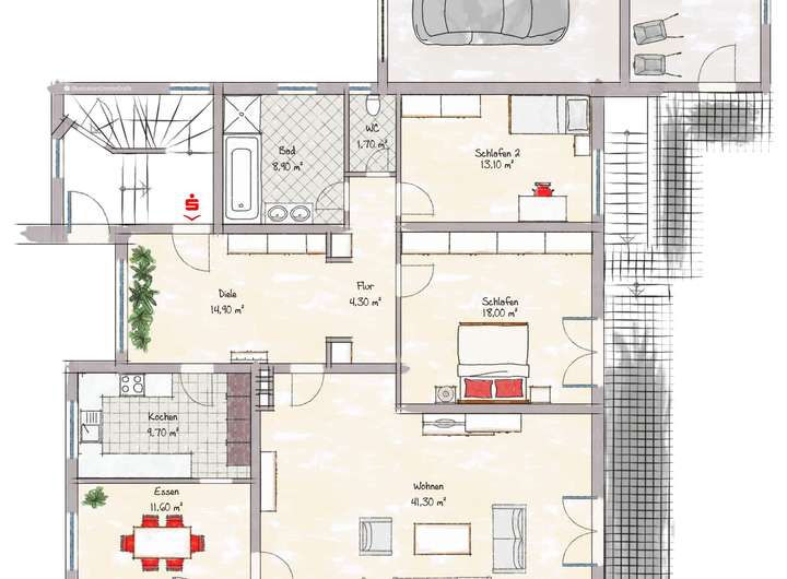 - weitere KfZ-Stellplätze im Hof oder vor der Einfahrt