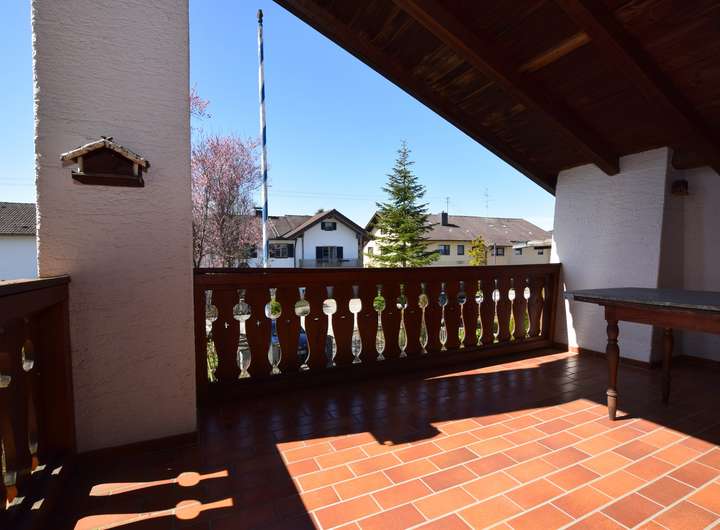 Im Obergeschoss befindet sich die zweite Wohnung mit 3 Zimmern, Küche, Bad und gesondertem WC. Diese ist derzeit gut vermietet. Der gute Zustand benötigt keine weiteren Renovierungen und sie verfügt über einen an zwei Seiten umlaufenden Balkon nach Süden und Osten. Dies ermöglicht den Mietern ebenfalls entspannte Stunden im Freien zu genießen.