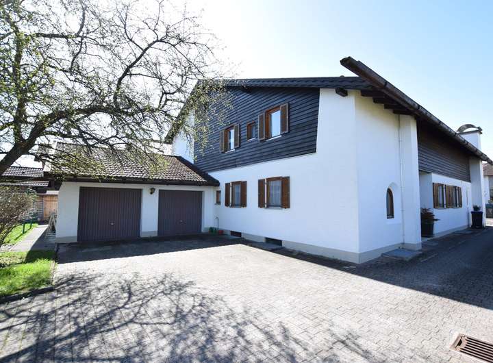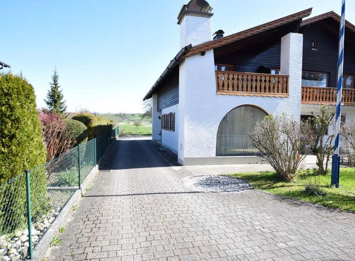 Das Haus verfügt über zwei Garagen sowie weitere Kfz-Stellplätze, sodass ausreichend Platz für Fahrzeuge vorhanden ist. Ein Geräteraum ist an die Garage angeschlossen.