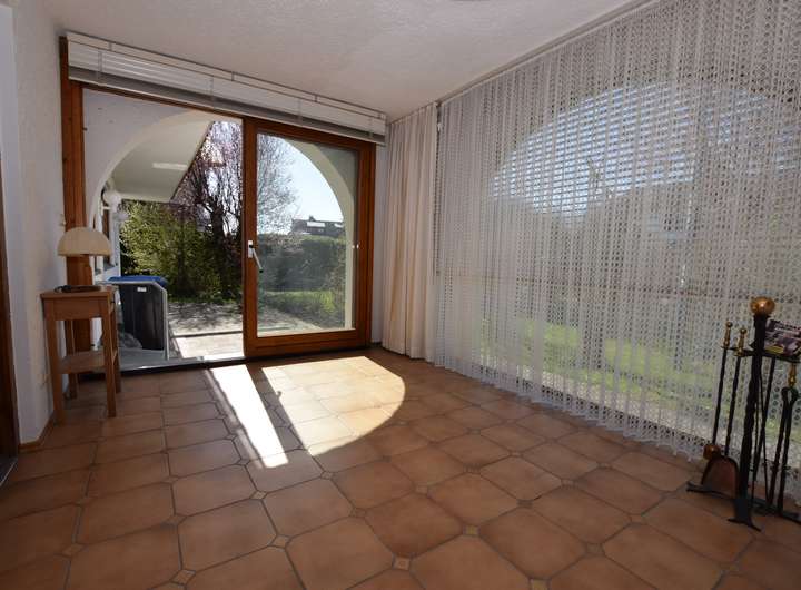 - Wintergarten mit Kachelofen, bei welchem der Einsatz erneuert werden muss