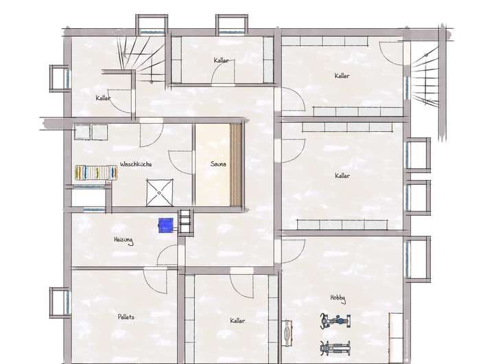 - Kellerräume mit tw. großen Fenstern und daher gut nutzbar