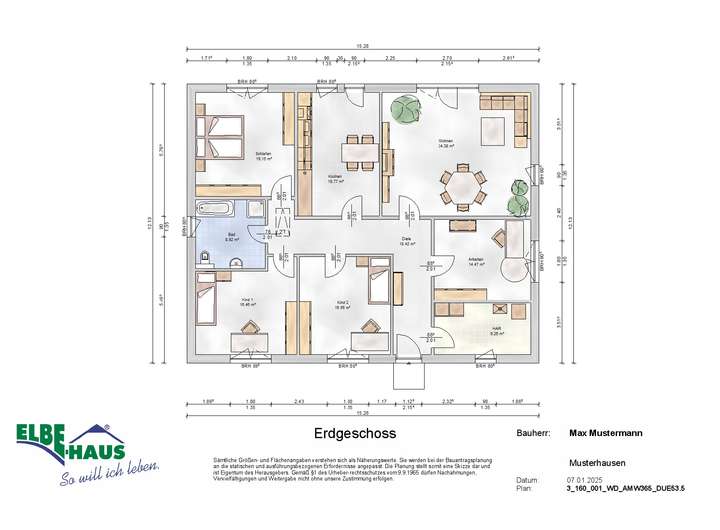 Dieses innovative Elbe-Haus® wird in massiver Bauweise von qualifiziertem Fachpersonal errichtet. Wir planen und projektieren nach Ihren Vorstellungen und Wünschen und somit ist wirklich jedes Haus einzigartig. Beachten Sie bitte, dass das abgebildete Haus lediglich ein Bebauungsbeispiel ist. Das Grundstück kann unter Berücksichtigung der örtlichen Bauvorschriften mit Ihrem Wunschhaus von Elbe-Haus® errichtet werden. Sie legen Wert auf Sicherheit? Wir von Elbe Haus® auch. Deshalb bieten wir Ihnen: • Individualität • Festpreis 24 Monate & Bauzeitgarantie • Baubegleitende, unabhängige Qualitätskontrolle (10 Audits) • Persönliche Betreuung durch ein Team vor Ort (Vertrieb, Planer, Bauleiter) • Qualifizierte Bemusterungsmöglichkeiten in unserem Bauherrenzentrum in Köln • Markenprodukte • Innovative Technik und enge Zusammenarbeit in Technologieentwicklung und Forschung mit unseren Industriepartnern • Komplettleistungen (inkl. Spachtelarbeiten, tapezierfähig) • Zertifizierte Nachunternehmer • Unsere Bauherren dürfen die Baustelle jederzeit betreten • Kundenfreundlicher Zahlungsplan & Zahlungsziele • Fertigstellungsbürgschaft • Gewährleistung aus einer Hand • Gebäudecheck nach 12 Monaten • Vollständige Dokumentation