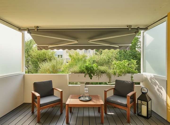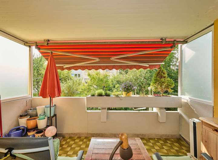 Der Grundriss ist funktional gestaltet und bietet eine sinnvolle Raumaufteilung. Vom zentralen Flur aus sind sämtliche Zimmer separat begehbar. Das Wohnzimmer ist großzügig bemessen und ermöglicht den Zugang zur ca. 8,35 m² großen Loggia, die über eine ausfahrbare Markise verfügt. Diese Fläche ist überdacht und bietet zusätzlichen Wohnkomfort im Außenbereich.