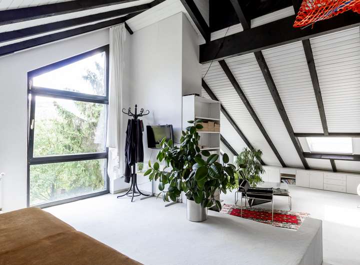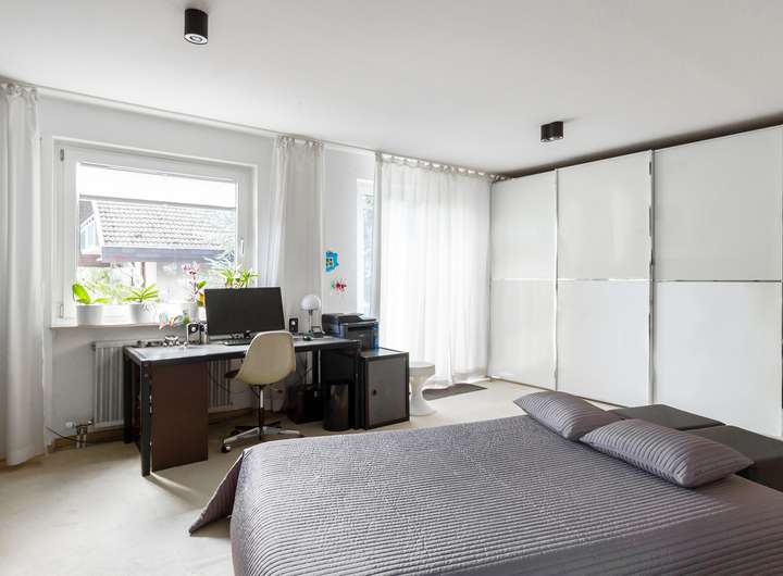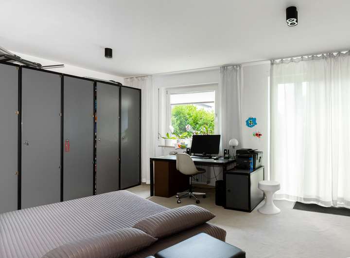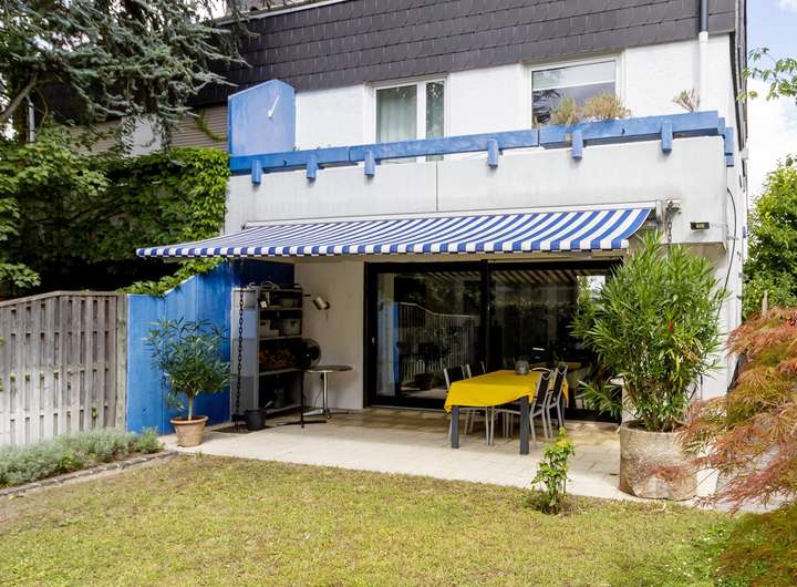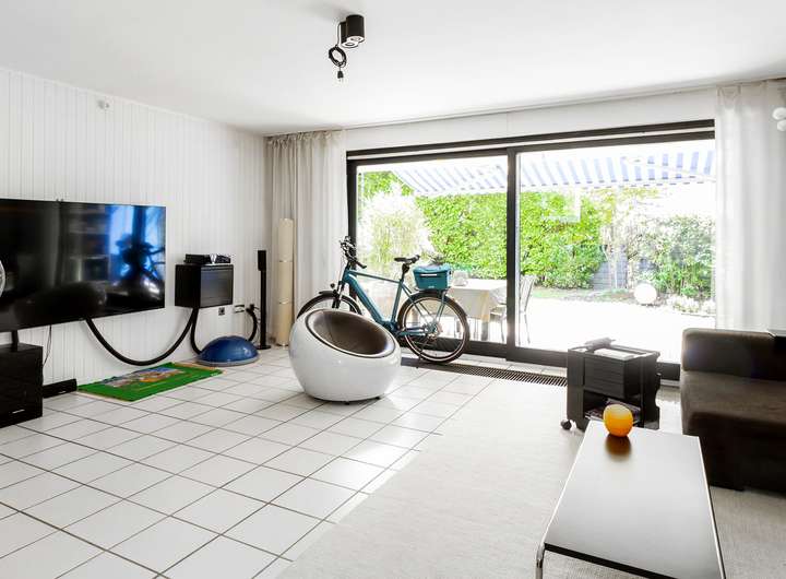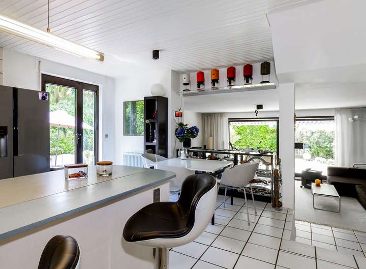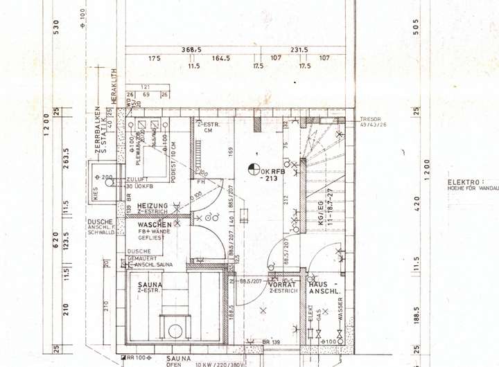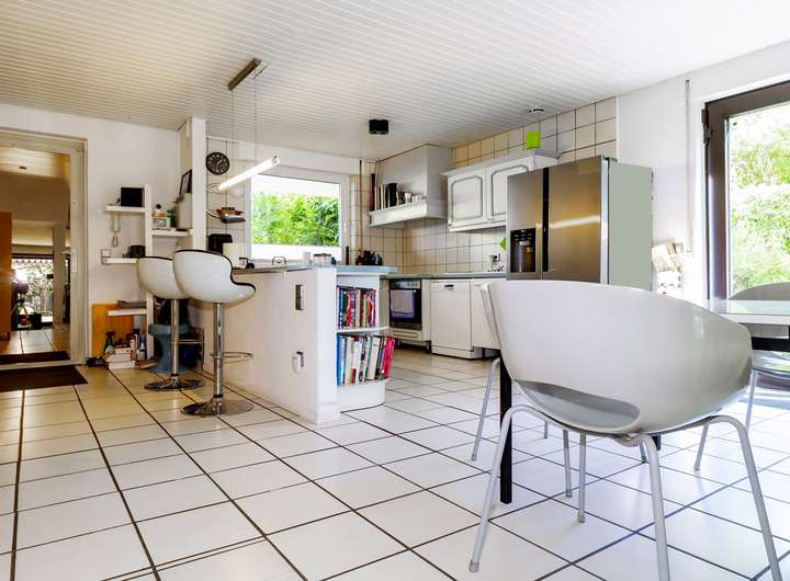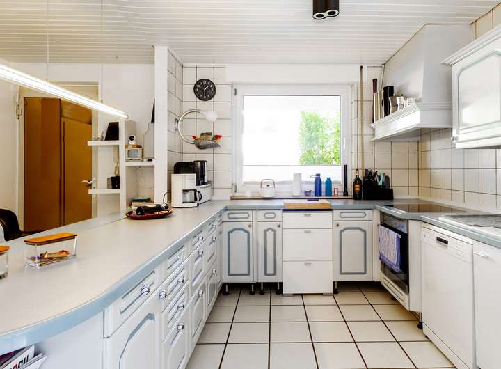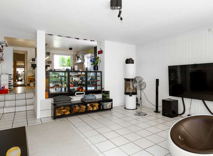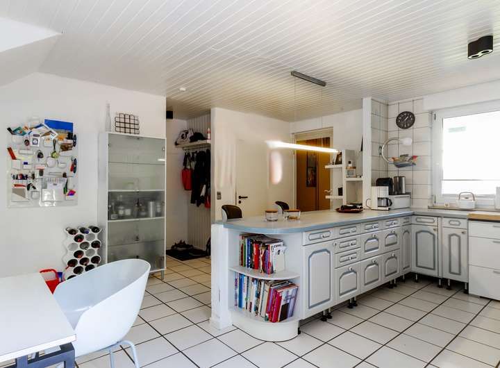 Böden: Fliesen, Teppichböden Heizung: Gas-Zentralheizung Bj. 1991mit Warmwasserversorgung, Festbrennstoffofen Fenster: Isolierverglasung, verschiedene Baujahre größenteils von 2003, Holz weiß + braun, große Schiebeelemente zur Terrasse, Markise, Rollläden Bäder: OG: Tageslicht-Wannenbad, bodengleiche Dusche, Waschbecken, WC von 2018; EG: Gäste-WC Küche: Einbauküche mit E-Geräten Garage mit Stellplatz davor UG: Heizungsraum, 2 Keller, Sauna mit Ruheraum - Anschlüsse für Dusche vorhanden, Diele EG: gr. Wohnraum mit vorgelagerter Terrasse, offene Küche + Esszimmer mit vorgelagerter Terrasse, Diele, Gäste-WC OG: 2 Schlafzimmer mit Balkon, Badezimmer, Flur DG: Großer Studioraum