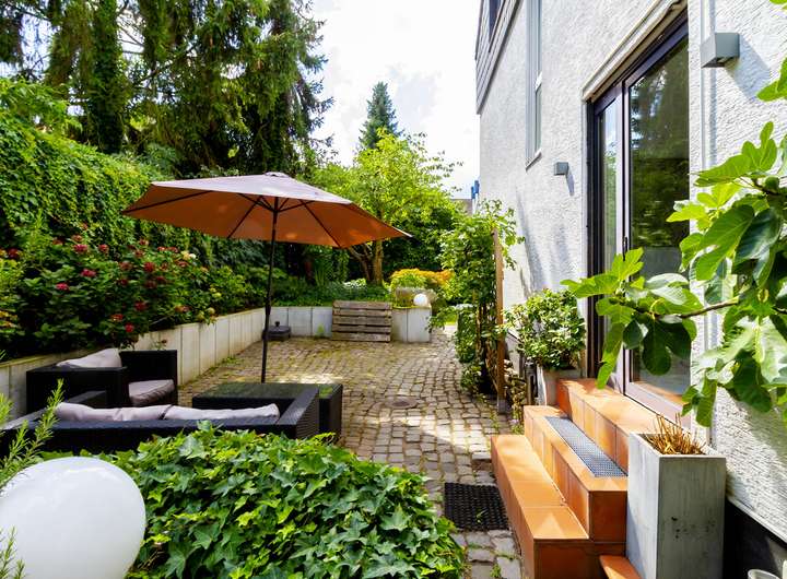 Die massiv gebaute, teilunterkellerte Doppelhaushälfte liegt in schöner, ruhiger und dennoch zentraler Lage auf einem 313 m² großen Grundstück in Seeheim-Jugenheim. Zwei Terrassen Richtung Süden und Osten und der Garten laden zum Aufenthalt im Freien ein. Die Garage liegt auf einem separaten 54 m² großen Grundstück an der Strasse. Die moderate Splitlevel-Bauweise und die offenen Räume ermöglichen großzügiges Wohnen im EG. Die teils bodentiefen Fenster und Türen und die Giebelfenster bringen viel Licht in die Räume, 3 große Zimmer im OG und DG, 2 Balkone Richtung Norden und Süden, ein modernes Badezimmer und eine Sauna im Keller ergeben ein umfangreiches Wohnangebot für eine Familie. Bei der Heizung besteht Modernisierungsbedarf. Die Haltestellen des ÖPNV und Einkaufsmöglichkeiten sind in fußläufiger Entfernung zu erreichen.