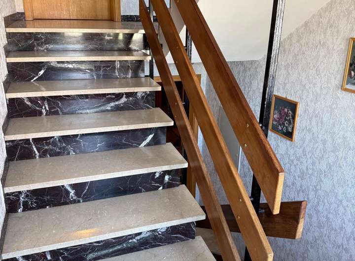 Im Erdgeschoß befinden sich die Hauptwohnung mit 4 Zimmern, einem Wohnbereich, einer Küche, einem Tageslichtbad, separatem Gäste-WC, und eine große Diele. Die Wohnfläche beträgt hier 120 m².