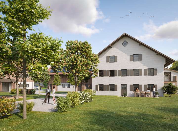 Prägnant aber zurückhaltend ist das denkmalgeschützte Bauernhaus stilprägend für die Entwicklung des Neubau-Ensembles mit nur 12 Wohneinheiten auf dem über 3.200 m² Grundstück eines denkmalgeschützten Bauernhofes. Vielfältige Wohnformen für Jung und Alt schaffen ein generationenverbindendes Zuhause mit dem Ensemblecharakter einer alten Hofstatt.