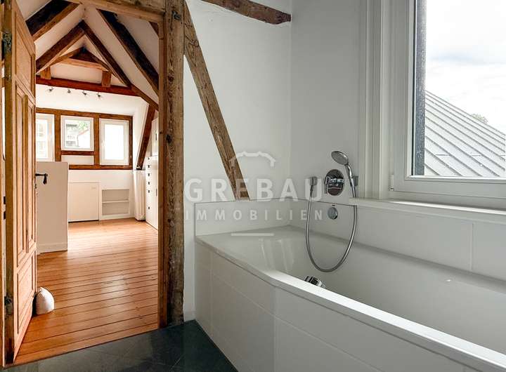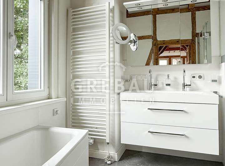 - je ein Bad auf jeder Ebene, eines davon 2013 exklusiv als Vollbad mit abgetrenntem WC (Geberit Dusch-WC) „im Turm“ erneuert