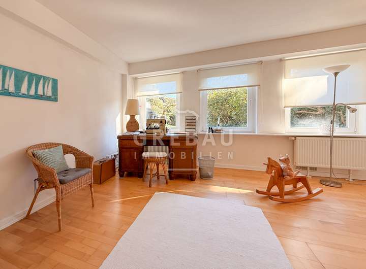 - zwei weitere Zimmer, eines davon mit Dachschrägen, Einbauschränken und Elbblick
