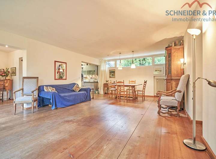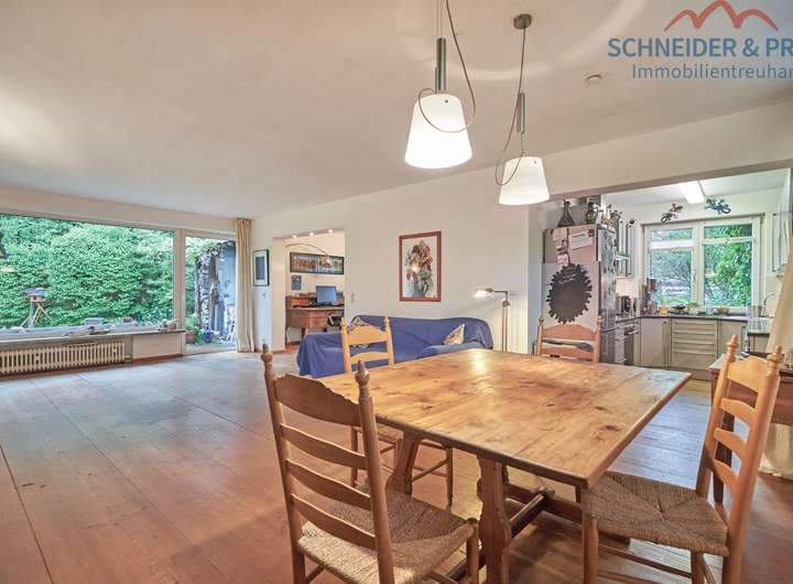 Dieser charmante Bungalow aus den 60er Jahren befindet sich in einer angenehmen Wohnlage auf einem ca. 700 m² großen Grundstück. Zwischen 1997-2004 wurde das Haus modernisiert, einschließlich Dach, Fenstern, Türen, Boden, Heizungsanlage und Bädern. Der Grundriss wurde dabei offener gestaltet, sodass heute ein großzügiger Wohn- und Essbereich mit offener Küche das Herzstück bildet. Die großen Echtholzdielen und die Fensterfronten sorgen für eine helle, freundliche Atmosphäre mit Charakter.