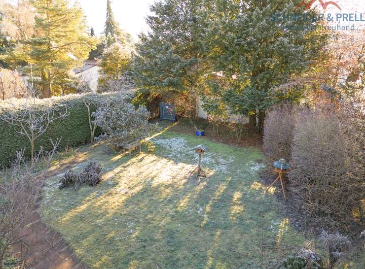 Der Garten ist rundum eingewachsen, bietet Privatsphäre und ist ein echter Rückzugsort. Die Loggia mit Kamin lädt zum Entspannen ein, sei es beim Frühstück oder einem Grillabend.