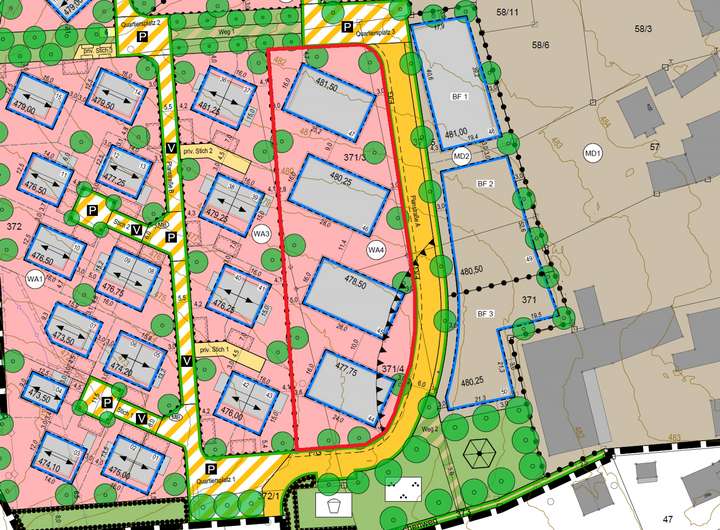 Der bestehende Bebauungsplan sorgt für optimale Bebauungsvoraussetzungen und gibt Ihnen als Bauträger maximale Planungs- und Investitionssicherheit. Geplant sind vier ansprechende Baukörper, die sich harmonisch in das hochwertige Wohnumfeld einfügen und vielfältige Gestaltungsmöglichkeiten bieten.