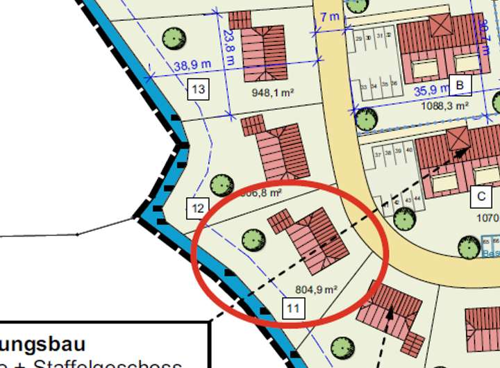 Des Weiteren werden 6 Grundstücke für die Errichtung von Mehrfamilienhäusern erschlossen. Die MFH-Grundstücke bieten mit Ihren jeweils ca. 1000 qm die Möglichkeit, ein Mehrparteienhaus mit 6 bis 8 Wohneinheiten zu realisieren.