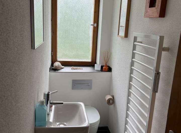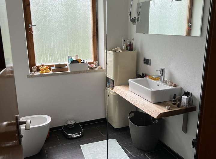 Beide Wohnungen verfügen über je zwei getrennte Bäder/WCs, im 1.OG wurden diese im Zuge der Modernisierung umgestaltet und mit einer ebenerdigen Dusche sowie hochwertigen Fliesen und Badobjekten ausgestattet.
