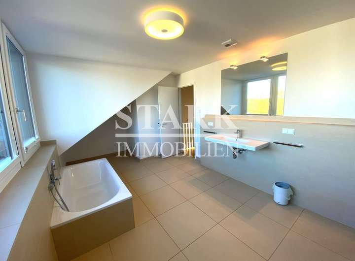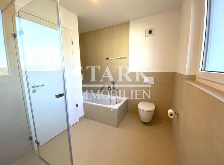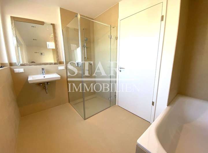 Das 2. Obergeschoss ist als exklusiver Elternbereich gestaltet. Hier erwarten Sie ein großzügiges Schlafzimmer, eine separate, bereits eingebaute Ankleide sowie ein weiteres, großzügiges Tageslichtbad mit Walk-in-Dusche und Badewanne – Wellness-Feeling inklusive.