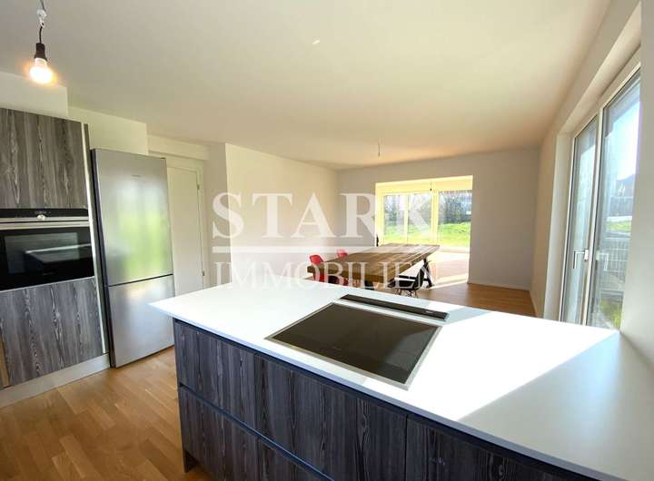 Diese stilvolle und gepflegte Doppelhaushälfte überzeugt durch ihre durchdachte Architektur, Ausstattung und eine ruhige Wohnlage in unmittelbarer Feldrandnähe. Das Haus eignet sich ideal für Familien, die großzügiges, lichtdurchflutetes Wohnen in naturnaher Umgebung schätzen.