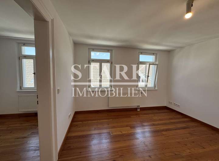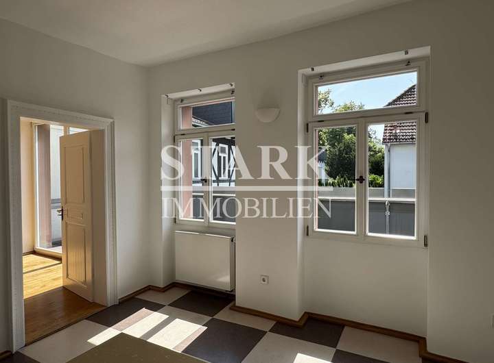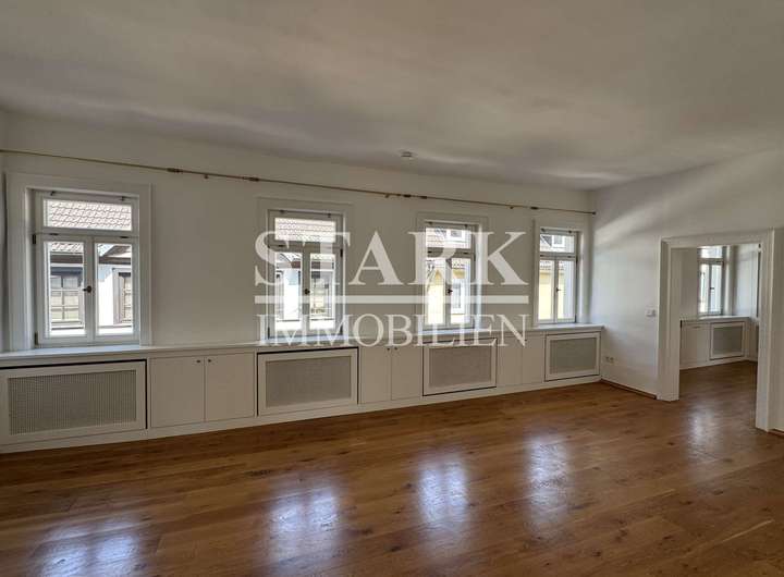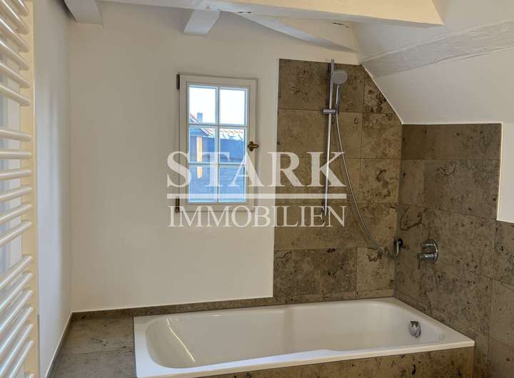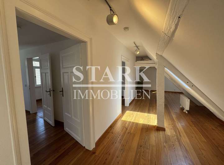 Dieses denkmalgeschützte Ensemble wurde vor wenigen Jahren mit viel Liebe zum Detail aufwendig saniert und verbindet stilvolle Architektur mit hochwertiger Ausstattung. Gelegen in der Fußgängerzone, erstreckt sich das „Stadthaus“ über das 1. Obergeschoss und das Dachgeschoss und ist über einen privaten Eingang sowie einen Lift direkt in die Hauptetage zugänglich.