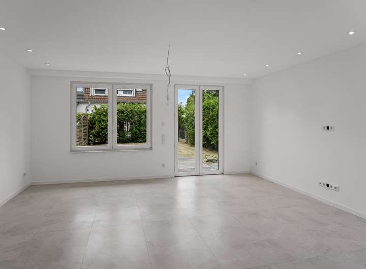 Dieses modern sanierte Reihenendhaus aus dem Jahr 1960 bietet eine Wohnfläche von 94,24 m², verteilt auf drei Wohn- und Schlafzimmer. Es wurde umfassend Saniert/ Modernisiert: angefangen bei neuen Fenstern und Fußbodenheizung über eine neue Hauselektrik bis hin zur kompletten Dämmung der Immobilie und zwei Gauben im Obergeschoss. Dieses Objekt bietet viel Raum für die eigene Entfaltung! Sie betreten das Haus durch einen kleinen Flur, der in den offenen Grundriss des Erdgeschosses führt. Alle Räume wurden neu angeordnet. Zuerst erreichen Sie auf der linken Seite das Tageslicht-Badezimmer. Dieses wird mit großen, modernen Fliesen, einer Badewanne, einer begehbaren Dusche, einem Waschbecken und einer Toilette ausgestattet. Dank der Fußbodenheizung können Sie den Tag wohlig warm im neuen Bad beginnen. Auf der rechten Seite des Flurs befindet sich der Hauswirtschaftsraum mit der neuen Heizung und dem Anschluss für die Waschmaschine. Die Küche mit dem Wohn- und Essbereich bildet das Herzstück dieser Etage. Sie können eine Einbauküche ganz nach Ihren Vorstellungen einbauen lassen. Der neue Anbau bringt dank der großen Fenster viel Helligkeit und bietet Platz für eine gemütliche Sitzgruppe sowie einen Esstisch. Von hier aus betreten Sie auch den schönen Garten, den Sie ebenfalls nach Ihren Wünschen gestalten können. Neben einer Rasenfläche, Beeten und Sträuchern können Sie sich auf der Terrasse entspannen. Die Nord-West-Ausrichtung bietet an heißen Sommertagen idealen Schutz vor der Sonne. Zurück im Haus gelangen Sie über die Treppe ins Obergeschoss. Hier erwarten Sie zwei Zimmer, die durch die neu gebauten Gauben sehr hell sind. Das größere der beiden Zimmer hat einen direkten Zugang zum Dach, auf dem Sie eine schöne Dachterrasse verwirklichen können. Lassen Sie sich von diesem charmanten Haus überzeugen und vereinbaren Sie noch heute einen Besichtigungstermin!
