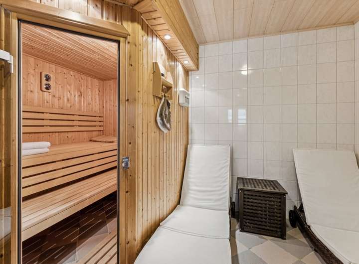 Für Erholung und Entspannung sorgt die im Erdgeschoss integrierte Bio-Sauna. Sie bietet sowohl ein mildes Saunaklima als auch die Möglichkeit zur finnischen Dampfsauna – ideal für gesundheitsfördernde und entspannende Stunden zu jeder Jahreszeit.