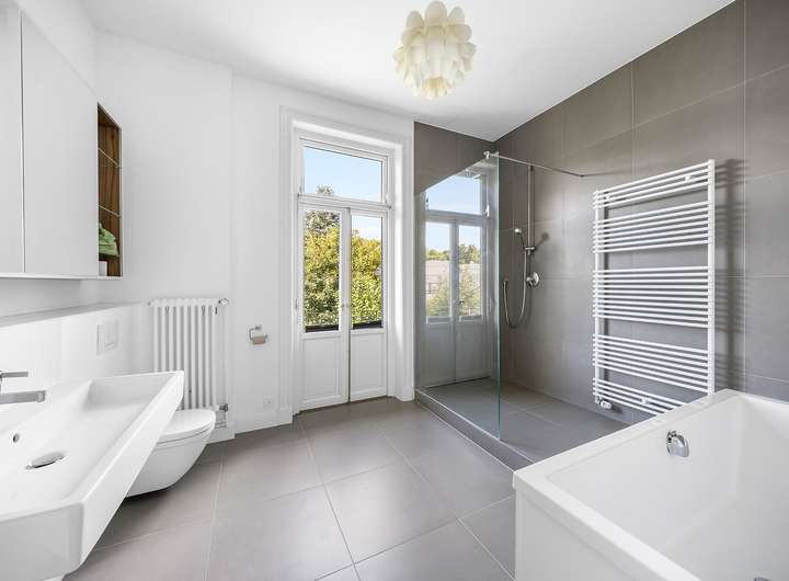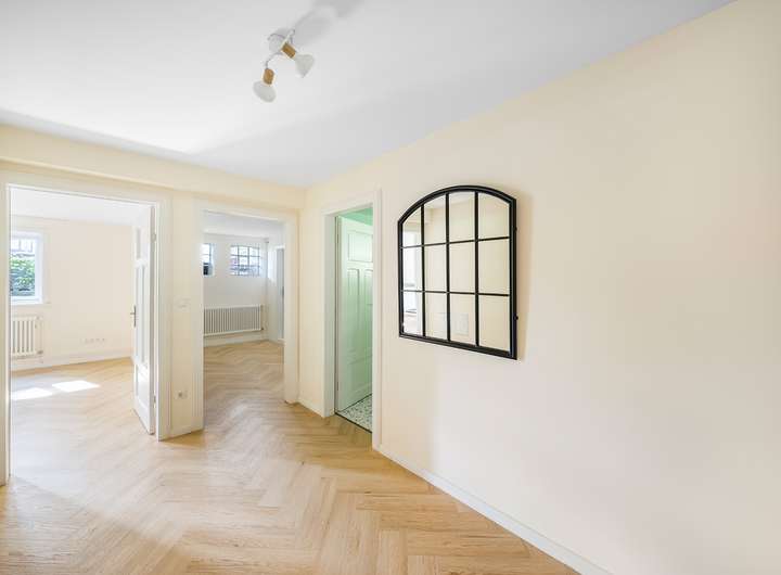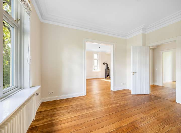 Die Villa hat einen großzügigen, hellen Grundriss und viele historische Details, die sorgfältig erhalten wurden.