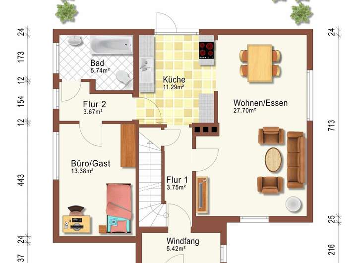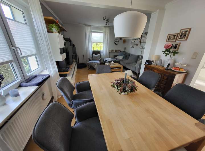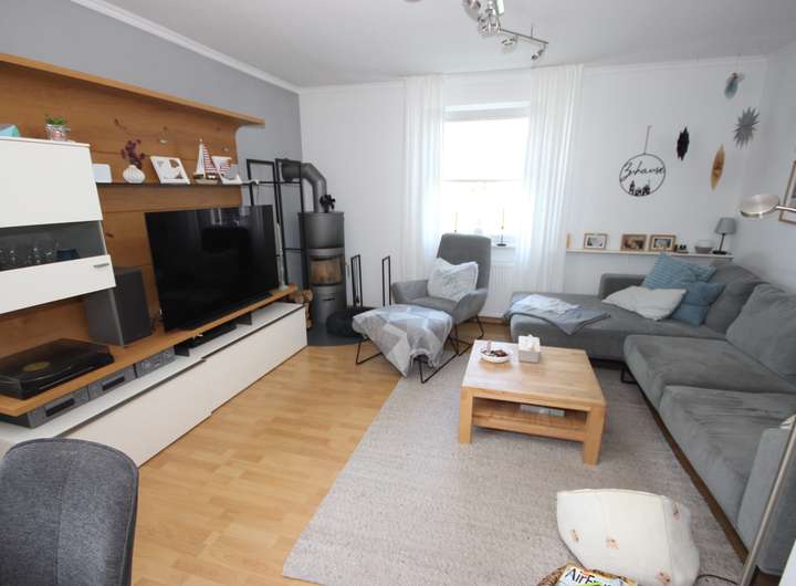 ca. 108 m² Wohnfläche, 4 Zimmer, Küche, 2 Bäder, 2 Flure, Windfang.