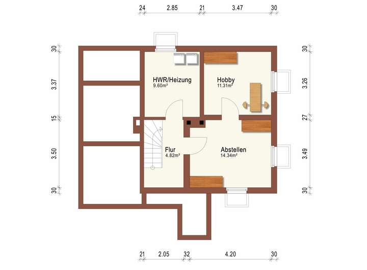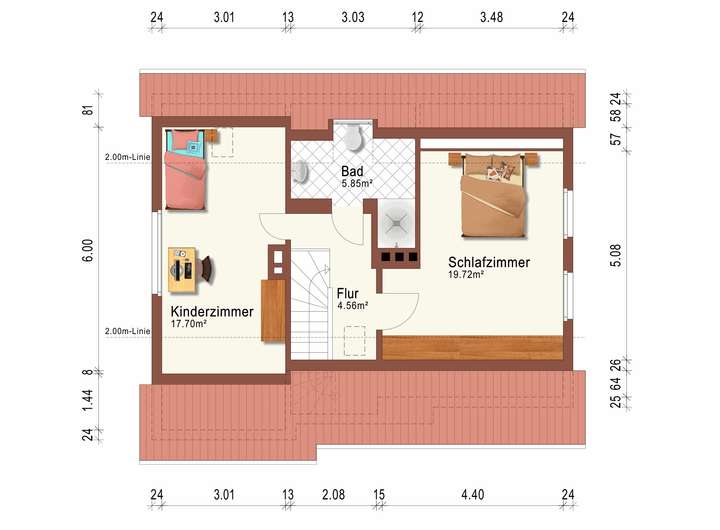 Dachboden (Abstellraum) über Einschubtreppe erreichbar.