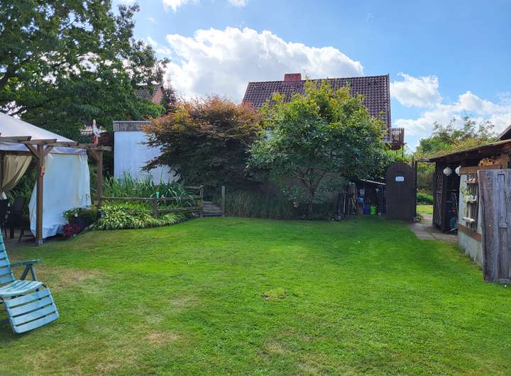 Garten mit Rasen, Bäumen und Sträuchern. Gehwege gepflastert. Doppelcarport: Holzbauweise, geschlossen und mit Schwingtoren. Gartenbewässerung Gardena. Gartenholzhaus. Gartenteich. Nicht im Angebot enthalten (Eigentum des Mieters): - Sichtschutzzaunelement - Gartenveranda - Metallpavillon Gern zeigen wir Ihnen dieses Objekt vor Ort oder schicken Ihnen vorab ein Exposee mit Grundrissen zu. Rufen Sie einfach unter Tel. 05375-2698 an. Besuchen Sie unsere Homepage www.immomueller.de Vielen Dank für Ihr Interesse. Sollte Ihnen die Immobilie bekannt sein, so erbitten wir innerhalb von 8 Tagen den Nachweis, wann und von welcher Stelle es Ihnen angeboten wurde; andernfalls es als unbekannt gilt. Alle Angaben nach Auskunft des Anbieters. Irrtum vorbehalten.