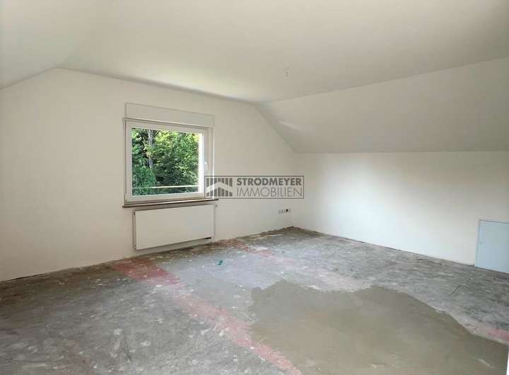 Das Dachgeschoss wurde nachträglich ausgebaut und beherbergt eine helle 2-Zimmer Wohnung auf ca. 57 m² mit saniertem Badezimmer und weiß verputzten Wänden.
