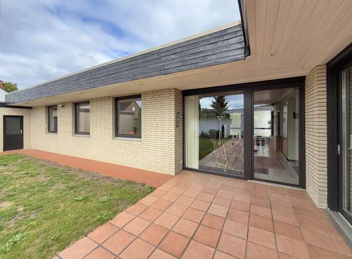 Wohnen auf einer Ebene im schönen Winkelbungalow mit atriumählichen Garten in guter Lage