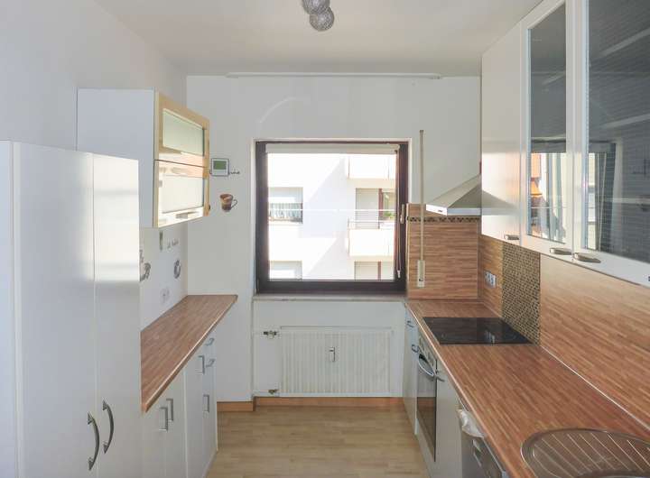 Die Wohnung besticht durch einen großzügigen, offen gestalteten Wohn- und Essbereich, der viel Licht und eine angenehme Wohnatmosphäre bietet. Von hier aus gelangen Sie auf den sonnigen Südbalkon (ca. 10 m²), der zusätzlich auch von einem der Zimmer begehbar ist. Neben dem Wohn- und Essbereich stehen Ihnen ein weiteres Zimmer, eine große Küche, ein Tageslichtbad mit Badewanne und modernem Spiegelschrank, ein separates Gäste-WC sowie ein praktischer Flur zur Verfügung.