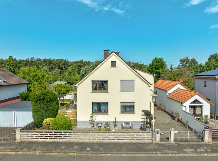 Diese gepflegte und solide gebaute Immobilie aus dem Jahr 1953 präsentiert sich als vielseitig nutzbares Zweifamilienhaus in bester Lage von Hainburg-Hainstadt.