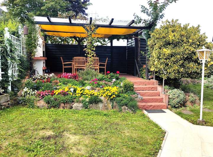 Der Keller bietet vielseitige Nutzungsflächen: einen Hobbyraum (derzeit mit neuwertiger Bar ausgestattet für gemütliche Feste), ein großes wohnlich eingerichtetes Zimmer (nicht in Wohnfläche enthalten), ein Bad mit Dusche, einen Hauswirtschaftsraum mit Küche, einen Vorratsraum, einen Heizungsraum sowie Fluren. Hier finden Sie ausreichend Platz für Vorratshaltung, Haustechnik und zusätzliche Nutzungsoptionen. Der Garten präsentiert sich gepflegt mit einer überdachten Sitzgelegenheit, einer weiteren Terrasse, einem Gartenhaus und einem Außengrill. Die Bewässerung des Gartens erfolgt mittels großem unterirdischem Regenwassertank. Aus dem Garten und auch der Eingangsseite gibt es einen direkten Zugang zum Untergeschoß. Zwei Garagen, wovon eine mit Grube ausgestattet ist, bieten zusätzlichen Komfort.