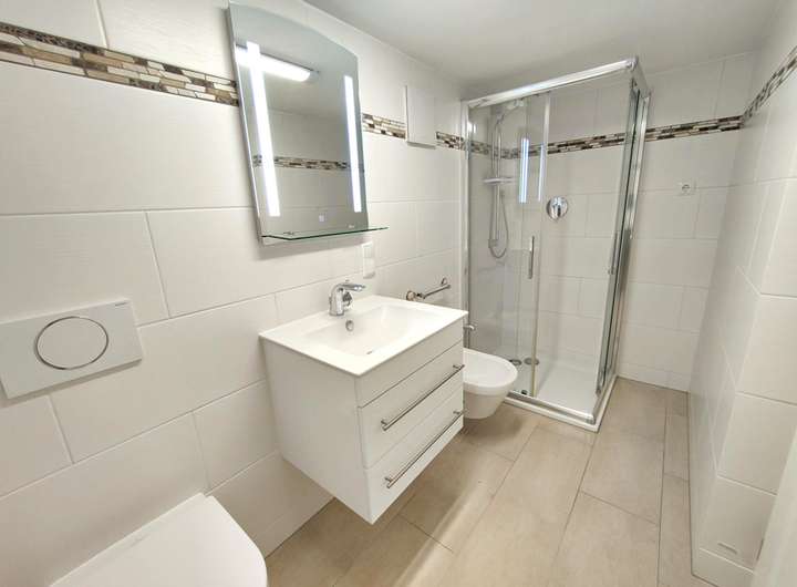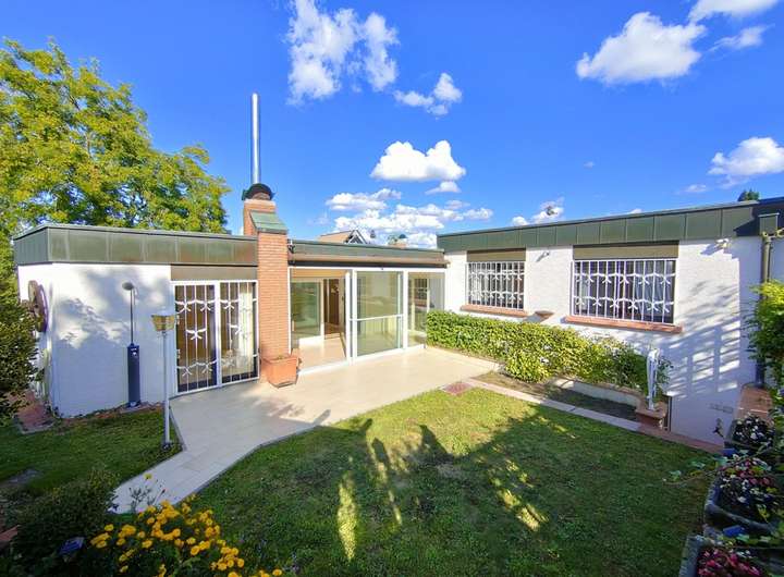 Zu den besonderen Ausstattungsmerkmalen gehören eine moderne Buderus-Gasheizung (2021 neu), Flachdach, sowie elektrische Jalousien an allen Fenstern im Erdgeschoss und der Einliegerwohnung. Die Einliegerwohnung (neu renoviert inkl. Fußboden) im Keller mit eigenem Eingang eröffnet flexible Nutzungsmöglichkeiten – ideal als Vermietungsoption oder für Gäste. Bei Bedarf könnte evtl. die Einliegerwohnung durch einen Durchbruch zum Gästezimmer (Nutzfläche) vergrößert oder zum Haus hinzugenommen werden.