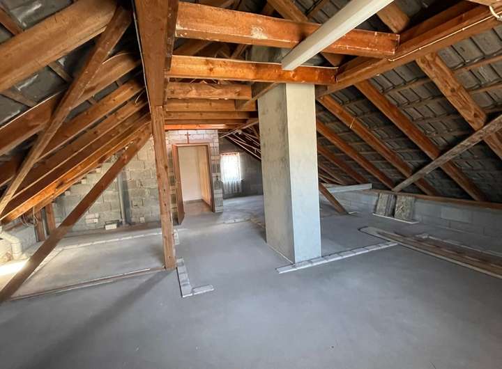b)Im Obergeschoss: drei Schlafzimmer mit viel Platz, sowie ein großes Bad, der Flur und ein Balkon über die gesamte Breite des Hauses, zu erreichen vom Elternschlafzimmer. Das Dachgeschoss bietet nochmals zusätzlich die Möglichkeit das Platzangebot