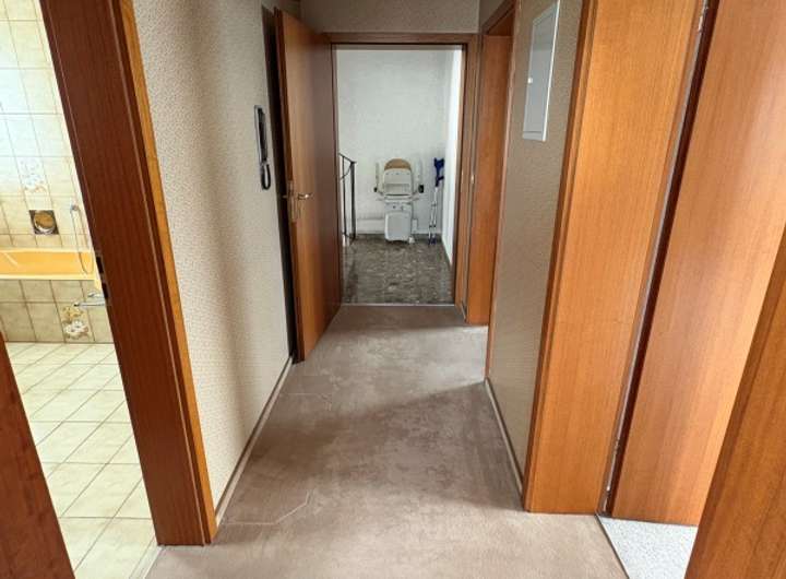 Eine Besonderheit stellt der, bereits im Treppenhaus installierte Treppenlift dar, welcher auch Bewohnern mit mobiler Einschränkung das Obergeschoss mühelos erreichen lässt.