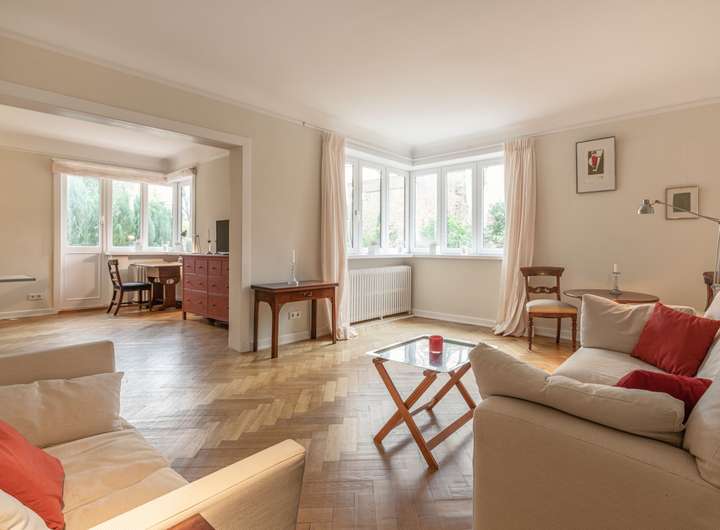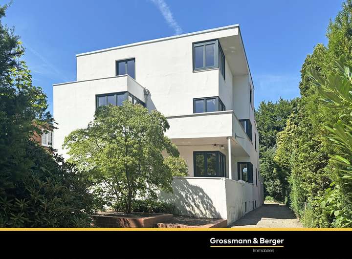 Diese charmante Villa aus dem Jahr 1929 von York und Pittin, stellt ein architektonisch und historisch wertvolles Objekt dar. Ein Haus im Bauhausstil richtet sich in erster Linie nach einem einzigartigen Architekturstil, der gekennzeichnet ist durch gerade Linien, klare Formen sowie ein schlichtes Design. Hierbei sind besondere Anforderungen und Auflagen für die Renovierung und Instandhaltung zu beachten, um den Charme und den Charakter sowie die denkmalgeschützte Bausubstanz zu bewahren. Aufgrund des Umgebungsschutzes ist kein Zubau möglich. Die Immobilie steht unter Denkmalschutz und kann steuerliche Anreize bieten. Dieses besprechen Sie bitte individuell mit Ihrem Steuerberater! Im Erdgeschoss befinden sich ca. 119 m² Wohnfläche, die sich über vier Zimmer und die Terrasse verteilen. Die beiden oberen Etagen bieten über eine Fläche von ca. 191 m² viel Platz. Sieben Zimmer stehen neben der Küche, den Bädern und der ca. 40 m² großen Dachterrasse mit Blick über die grünen Nachbargrundstücke zur Verfügung. Weiterhin gehören ein Vollkeller sowie eine Einzelgarage zum Angebot. Das Grundstück hat eine Größe von ca. 943 m² und wird als Erbpachtgrundstück auf 99 Jahre vergeben. Der Erbpachtzins beträgt € 600,00.