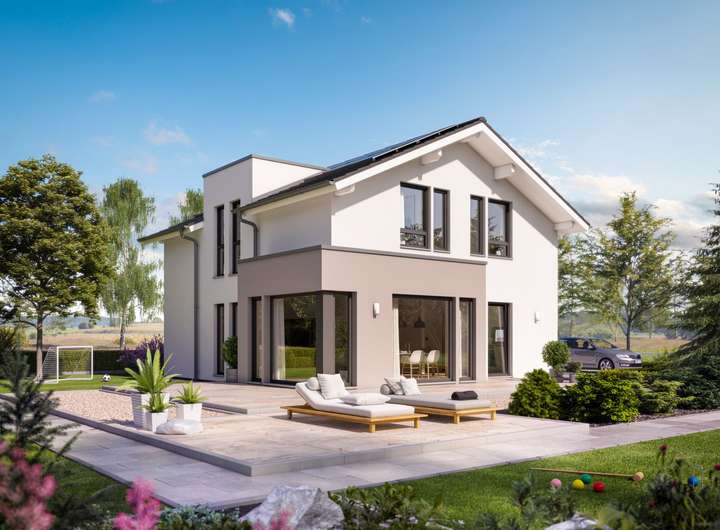 Dieses traumhafte Einfamilienhaus im malerischen Emstek bietet dir ein maßgeschneidertes Wohnerlebnis auf zwei Etagen mit insgesamt 144 m² Wohnfläche. Die moderne Architektur wird durch ein stilvolles Satteldach mit 25 Grad Neigung und einem praktischen Kniestock von 1,60 m perfekt ergänzt. Erker erweitern den Wohnraum und fluten dein Zuhause mit natürlichem Licht. Auf einer Grundstücksgröße von 588 m² kannst du deinen Garten gestalten und eine großzügige Terrasse genießen - ideal für gemütliche Stunden im Freien. Mit drei Schlafzimmern und zwei Badezimmern bietet dieses Haus Platz für die ganze Familie. Living Haus bietet dir exklusive Zusatzleistungen, um dein Wohnerlebnis zu perfektionieren. Die Traumküche von Living Haus ist genau auf deinen Grundriss abgestimmt und wird rechtzeitig zum Einzug geliefert. Sie beeindruckt durch modernste Technik und cleveren Stauraumlösungen. Mit dem Living Haus Bau-Cockpit behältst du jederzeit die Kontrolle über den Bauprozess deines Hauses. Dank der digitalen App sind alle wichtigen Informationen immer griffbereit. I-KON - Intelligentes Bauen steht für nachhaltiges Bauen kombiniert mit modernster Technik. Dein Zuhause wird energieeffizienter als je zuvor, insbesondere als I-KON Effizienzhaus 40 QNG, das sogar selbst regenerativen Strom produziert. Das Zuhause-Darlehen ermöglicht es dir, dein Traumhaus finanziell stressfrei zu realisieren - zu unschlagbaren Konditionen und mit staatlichen Förderungen. Das Zuhause-Paket beinhaltet eine hochwertige Grundausstattung mit modernen Böden, edlen Türen und stilvollen Sanitäranlagen, sodass alles fix & fertig geliefert wird. Mit dem DIY-Ausbau-Coaching wirst du in nur drei Tagen zum Profi im Innenausbau deines eigenen Hauses, unterstützt durch praxisnahe Tipps von Experten.