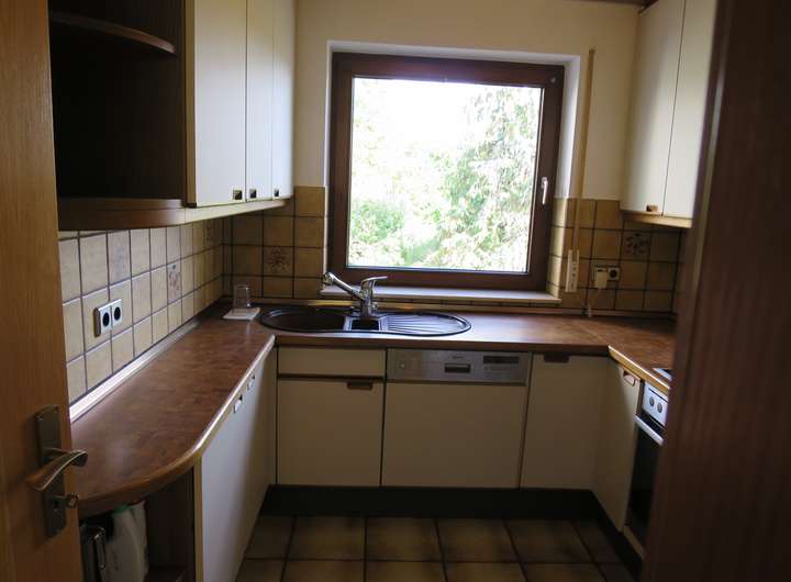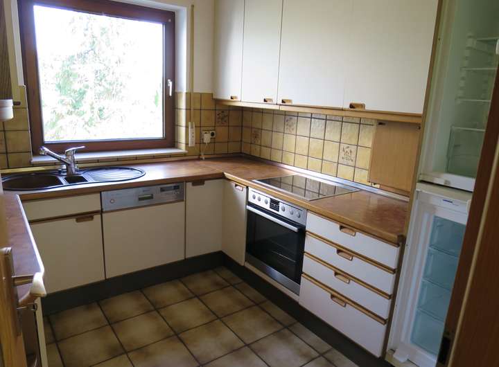 Die Küche ist mit einer Einbauküche inklusive Elektrogeräte ausgestattet.