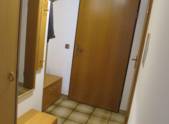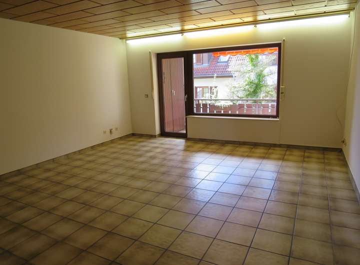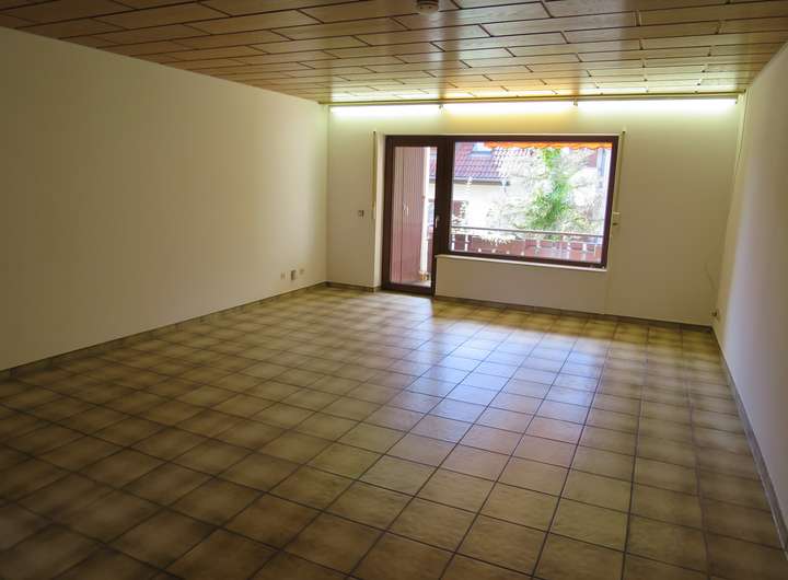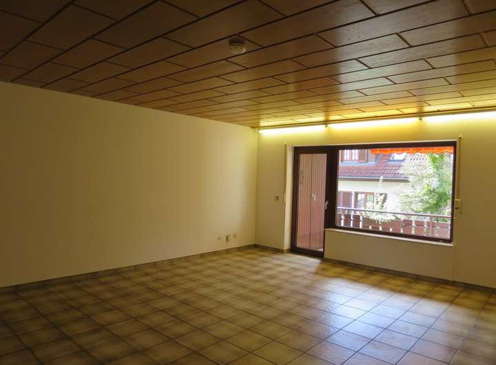 Die Wohnung verfügt über ein sehr geräumiges Wohnzimmer mit anliegendem sehr großem überdachtem Balkon, welcher auch vom Schlafzimmer zugänglich ist.