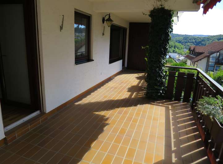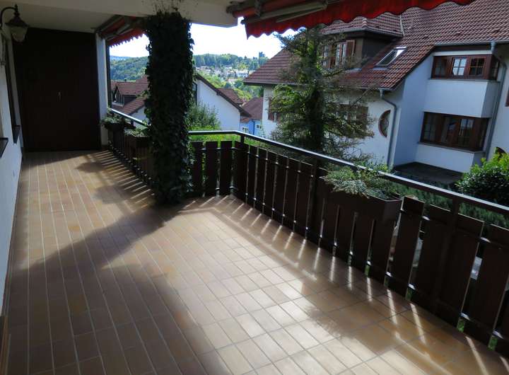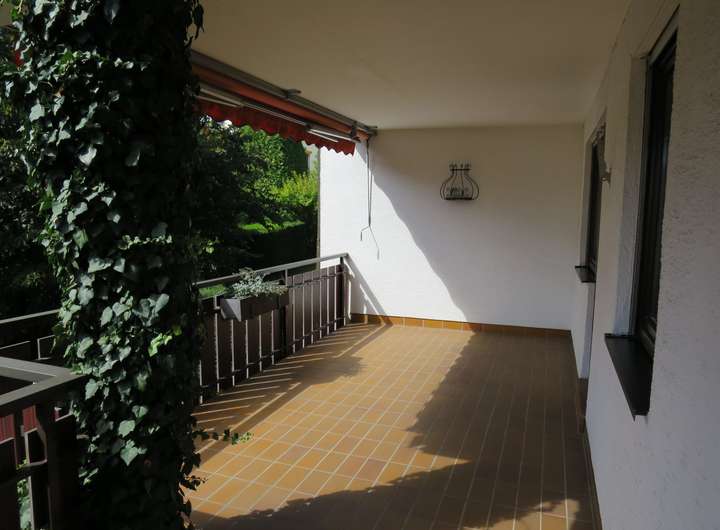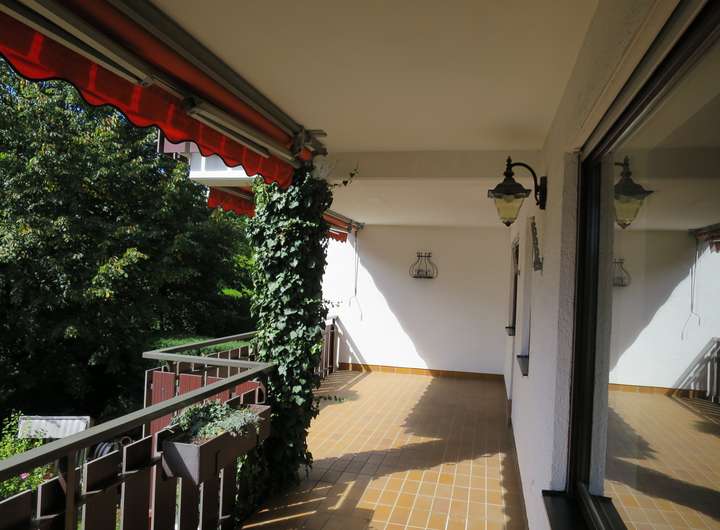 Eine geräumige Wohnung mit sehr großem überdachtem Balkon.
