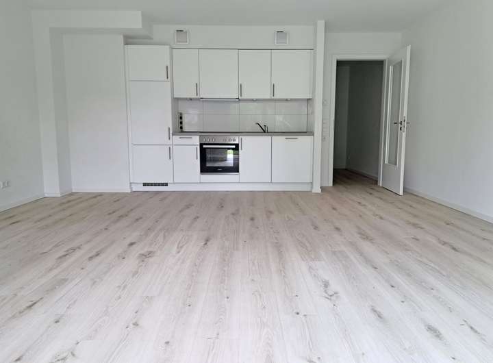 Die offen gestaltete Einbauküche fügt sich harmonisch in den Wohnbereich ein und ist mit einem Cerankochfeld, Backofen, Umlufthaube sowie einer Kühl-Gefrierkombination ausgestattet – ideal für alle, die gerne kochen und gleichzeitig den Wohnraum im Blick behalten möchten. Die Anschlüsse für Waschmaschine und Trockner befinden sich im praktischen Abstellraum, der zusätzlichen Stauraum bietet.