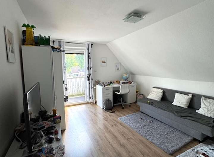 Im OG erwarten Sie 4 Zimmer (2 mit Zugang zum Balkon), 1 Bad mit Wanne sowie ein momentan als Büro genutzter Raum, der als Küche umfunktioniert werden kann; Anschlüsse sind vorhanden. Somit kann das OG auch als separate Einliegerwohnung genutzt werden.