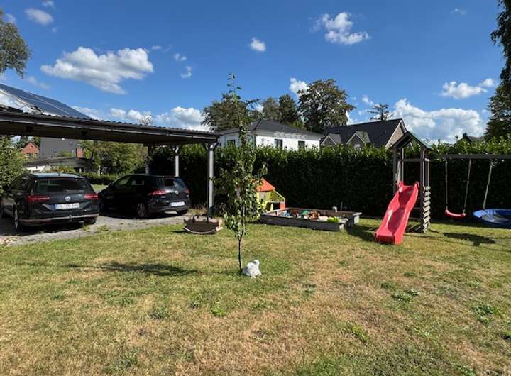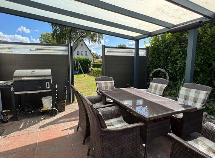 Auf der großen Süd-West-Terrasse, die teilweise überdacht ist, können Sie die Sonne genießen und mit Freunden grillen. Für Ihre Kinder steht ein eigener kleiner Spielplatz im Garten zur Verfügung.