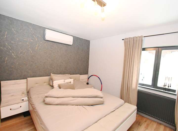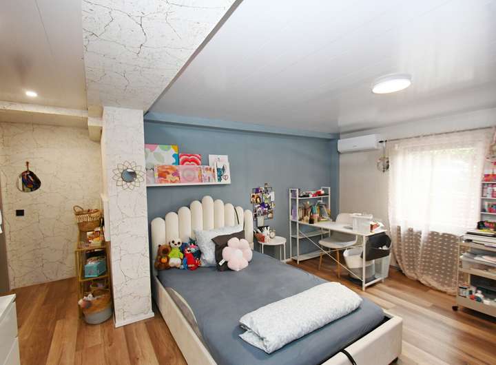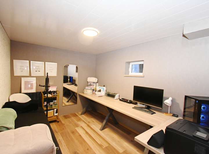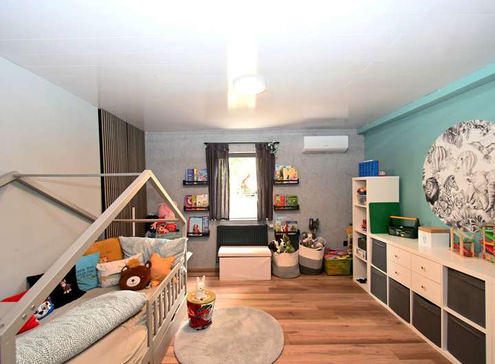 Zusätzlich wurden vier Klimageräte installiert, die im Sommer für angenehmes Raumklima sorgen. Im Souterrain ergänzen zwei helle Kinderzimmer sowie ein weiteres Zimmer (ideal als Büro oder zusätzliches Schlafzimmer) das Raumangebot.