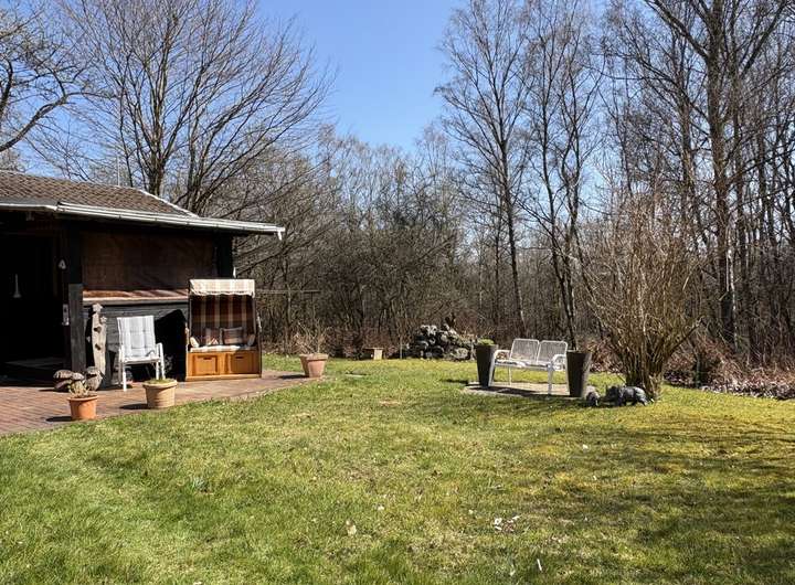 Das ca. 717 qm große Grundstück bietet nicht nur viel Platz zum Entspannen, Gärtnern oder Spielen, sondern auch ein Höchstmaß an Privatsphäre. Die Umgebung ist geprägt von Wäldern, Wiesen und Wanderwegen- der perfekte Rückzugsort aus dem Alltag.