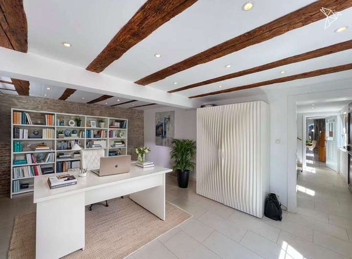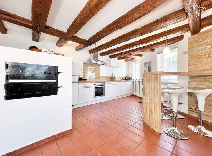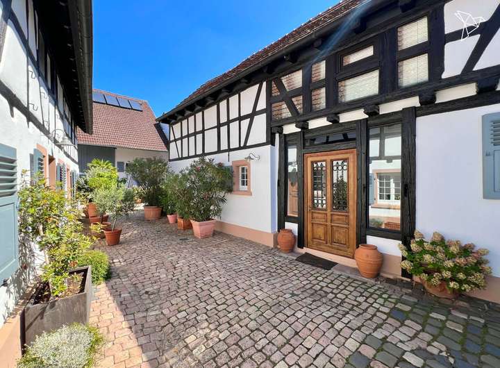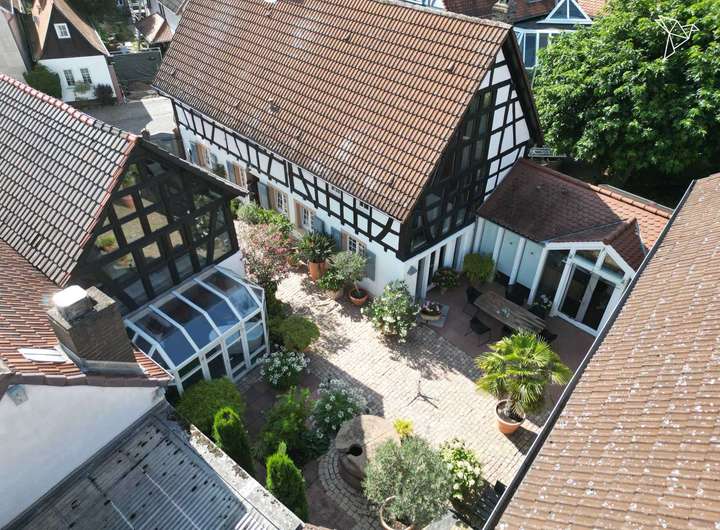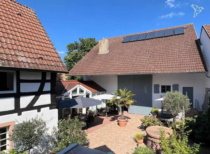 Diese außergewöhnliche, denkmalgeschützte Hofreite vereint historischen Charme mit modernem Wohnkomfort und bietet auf rund 320 m² Wohnfläche ein stilvolles Zuhause mit viel Liebe zum Detail. Die Immobilie besteht aus einem Haupt- und einem Nebenhaus sowie einer großzügigen Scheune und befindet sich auf einem ca. 617 m² großen Grundstück. Durch die besondere Aufteilung eignet sich das Anwesen ideal für Familien, für das Arbeiten und Leben unter einem Dach oder als stilvoller Rückzugsort mit hochwertiger Ausstattung und zusätzlichem Entwicklungspotenzial. Der Zugang zum Haupthaus erfolgt durch eine historische Barocktür, die dem Gebäude bereits beim Eintreten eine besondere Ausstrahlung verleiht. Im Erdgeschoss befinden sich ein großzügiger Eingangsbereich, ein Arbeits- oder Gästezimmer, ein modernes Duschbad sowie ein separates Esszimmer. Die Küche bildet das kulinarische Zentrum des Hauses und ist mit einer hochwertigen Bulthaup-Einbauküche, Granitoberflächen und Geräten von Gaggenau ausgestattet. Im Obergeschoss bietet das Haus ein komfortables Schlafzimmer mit angrenzendem Ankleidebereich, ein stilvoll gestaltetes Badezimmer mit 2 Waschbecken, moderner Ausstattung sowie einen großzügigen, lichtdurchfluteten Wohnbereich mit einem Kamin und direktem Zugang zum ausgebauten Dachgeschoss. Große, doppelt verglaste Fenster sorgen in allen Räumen für eine angenehme Helligkeit. Die Ausstattung mit Naturstein- und Holzböden unterstreicht den hochwertigen Eindruck, während ein kleiner Weinkeller im Untergeschoss den besonderen Flair des Hauses abrundet. Auch das Nebenhaus ist über einen separaten historischen Eingang zugänglich und überzeugt mit einer klaren Raumaufteilung sowie einer komfortablen Ausstattung. Im Erdgeschoss befindet sich ein modernes Wellnessbad mit großer Sauna, frei stehender Badewanne und beheiztem Fußboden, ideal für private Entspannung. Die großzügige Wohnküche ist vollständig ausgestattet und verfügt über einen traditionellen Stein-Holzofen, der dem Raum eine besondere Atmosphäre verleiht. Das Obergeschoss umfasst einen ca. 50 m² großen Wohnbereich sowie ein separates Schlafzimmer. Die Innenräume sind auch hier mit Fliesen- und Holzfußböden gestaltet. Die beeindruckende Scheune mit ihrem charakteristischen Fachwerk eröffnet ein breites Spektrum an Nutzungsmöglichkeiten. Auf der rechten Seite der Scheune befinden sich zwei Räume, die derzeit als Waschküche und Abstellraum genutzt werden, ergänzt durch eine Werkstatt mit separatem Zugang. Besonders hervorzuheben ist jedoch das außergewöhnliche Ausbaupotenzial: Dank ihrer großzügigen Dimensionen und der bestehenden Bausubstanz bietet die Scheune die Möglichkeit, zwei bis vier Wohneinheiten, je nach Größe, zu realisieren. Eine seltene Chance, wertvollen zusätzlichen Wohnraum zu schaffen oder langfristig von attraktiven Mieteinnahmen zu profitieren. Für den Ausbau der Scheune stehen in Hessen attraktive Förderungen bereit – von zinsgünstigen Darlehen der WIBank bis hin zu KfW- und BAFA-Zuschüssen für energetische Sanierungen, neuen Wohnraum und Barrierefreiheit. Auch im Außenbereich überzeugt das Anwesen mit durchdachter Gestaltung und besonderem Ambiente. Der historische Innenhof ist mit Mainsandstein gepflastert und führt zu einer stilvollen Terrasse sowie einem ruhigen Hinterhof. Eine romantische Feuerstelle lädt zu gemütlichen Abenden ein, während der gepflegte Hinterhof Raum für Entspannung im Grünen schafft. Ergänzt wird das Außenkonzept durch eine moderne E-Ladestation für Elektrofahrzeuge. Vereinbaren Sie jetzt Ihren Besichtigungstermin und überzeugen Sie sich selbst!